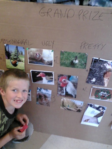The boys entered all of the contests and placed second prize for original photo and third prize for ugly chicken photo.