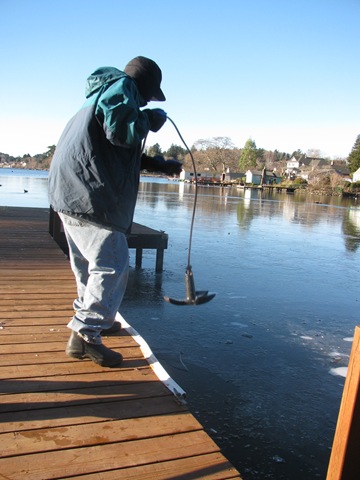 Round about the 10th of December, a cold snap came though town, freezing everything. We don’t live in a town that is used to 20 degree temps, it hovers around 40-60 all year long. 🙂 (yep even in summer). The ice, in the deepest set that we could free was about 2 inches thick. It would melt on top, and then refreeze, and to the naked eye it didn’t look like ice. It was amazing. The boys spent 2-3 days studying all things ice. In Central Oregon, the ice froze solid in our ponds, and they had negative 18 degree weather, so there wasn’t alot of outdoor discovery, unless it warmed up to 10 in the afternoon. So – yep, we had a lot of fun studying ice. Even went ice skating at the beach!