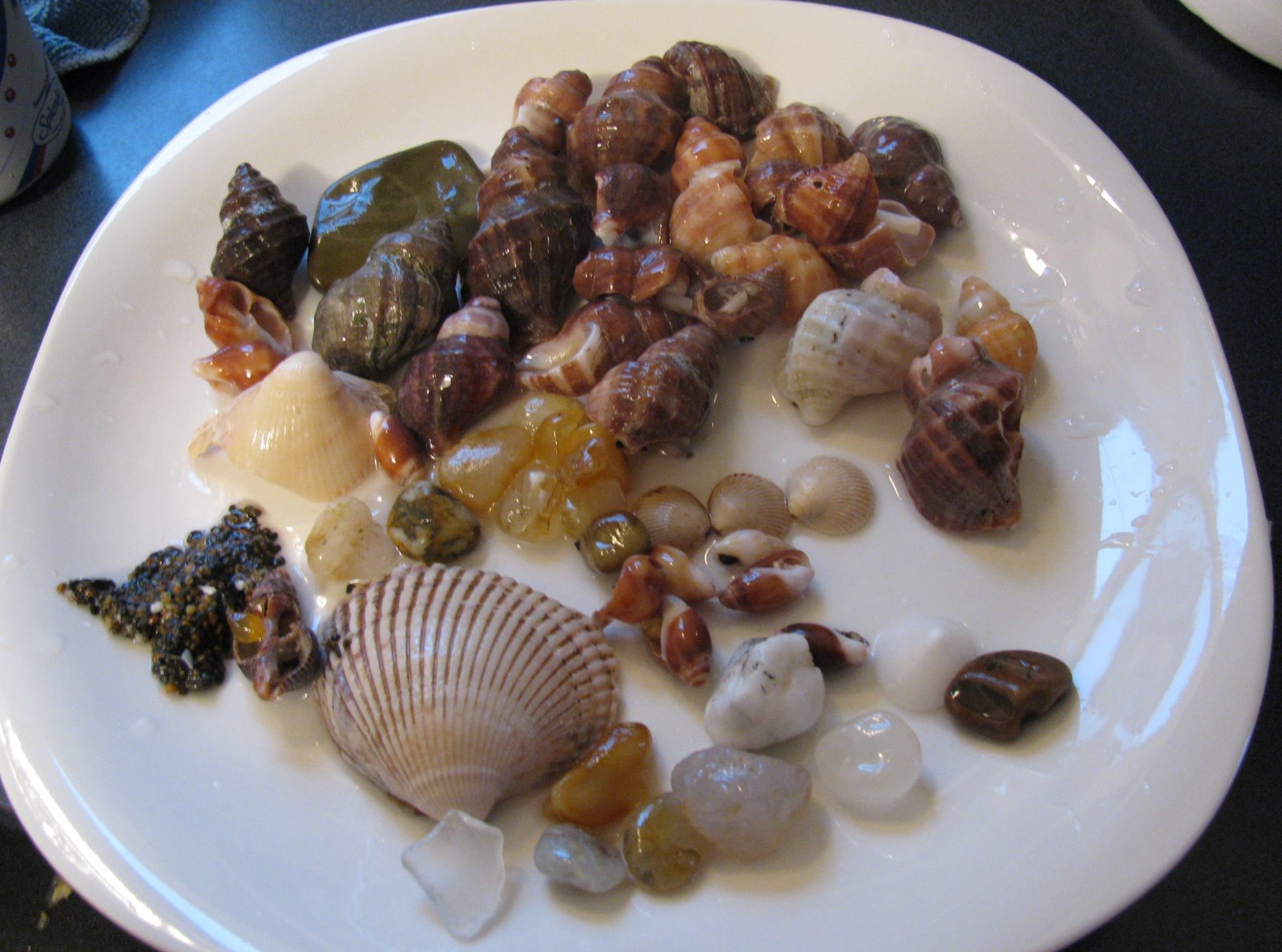 Today – we picked up shells. There were so many that we were walking on them, smashing, cruching, cracking.