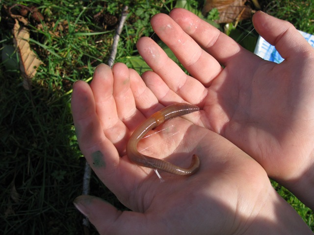 Little had we known, or thought, that we put our spot on an earthworm’s bed. They started coming up out of the canvas at the top, racing over the moss and grass, resembling tiny garden snakes. The boys were up and excited, measuring the worms, grabbing the camera, squealing. – Since they were up, we went into the woods to plant the little pine tree we picked up earlier in the week at the library.