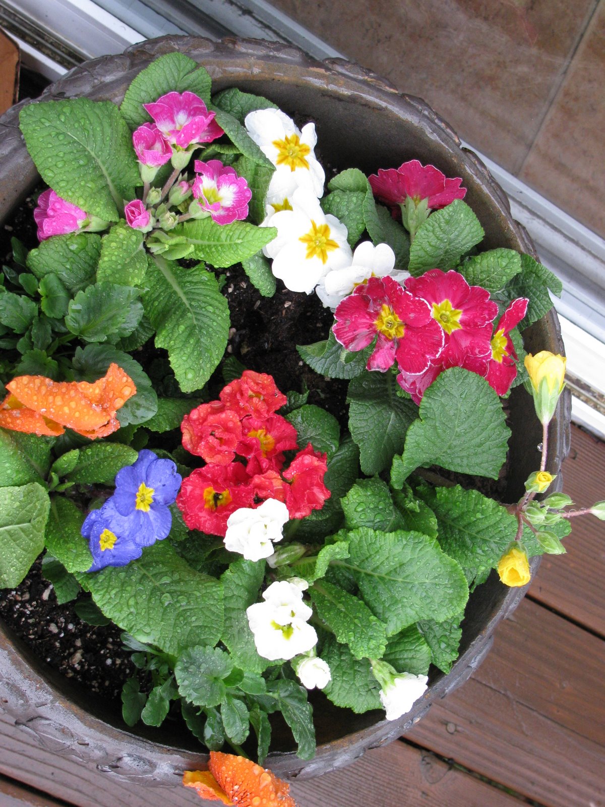 We planted some early flowers on the patio on February 14th to brighten the pots while we wait for the roses to re-grow. 🙂 The flowers in the yard are budding out, looks like we will have a wall of honeysuckle on the south side of the yard. LOVE spring on the coast!