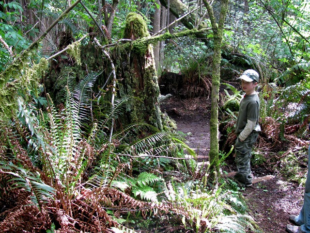One really interesting thing – (although we tried our hardest not to study a tree this week) was the Red Alder growing in the middle of the forest area – once it was exposed to light, the trunk started to grow branches and leaves in a bizarre way – one of the clues was to find this tree – just to observe it – without having any part of the “end prize”.