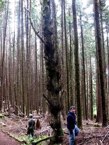 One of the older trees, growing around an old growth tree, in a newer reforested Forest Management area.  That’s Cool.