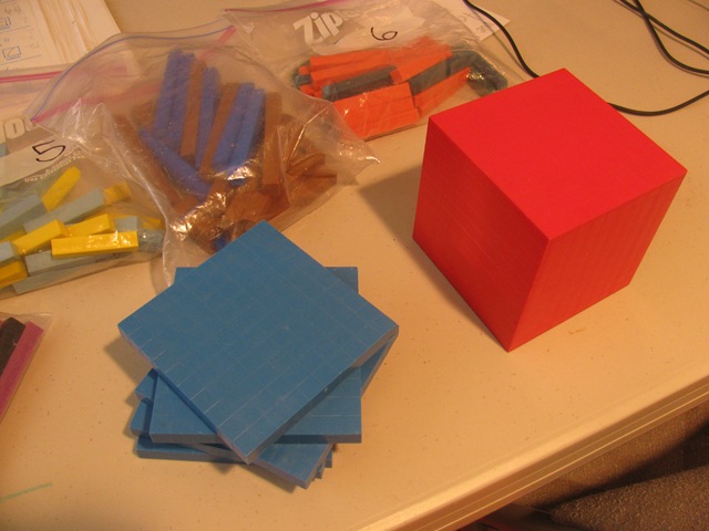 Both boys in the Math time like to say – “I cheated, cause 10 of the 5’s is 50 so I knew that 9 of the 5’s is 45.”.  “Cheat away little friend”, I say.