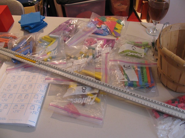 Using the track – figure out how many of the 9’s it takes to fill up to 45.  It takes 5.  First a guess, then figure it out with the Rods.  Jon had most of the guesses right.