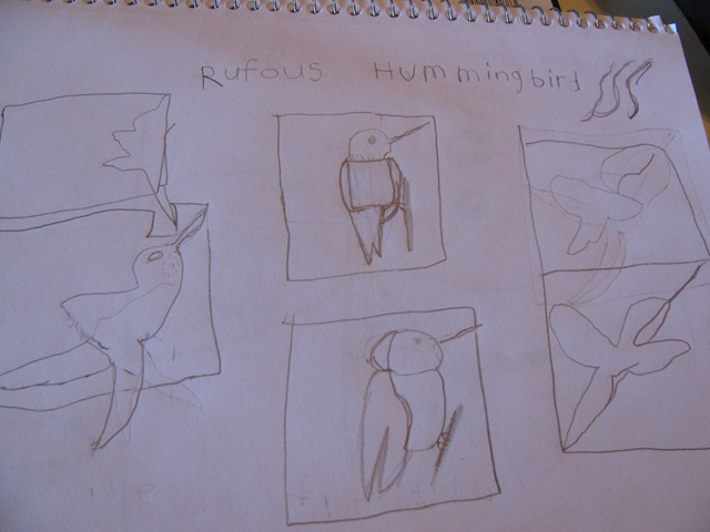 Yesterday – we sat and talked of our favorite birds – narrowed down to the Rufous Humming Bird and the Tree Swallow. Of course each boy wanted to study a different bird . . . . but we agreed on the Rufous Hummingbird for our intentional study.