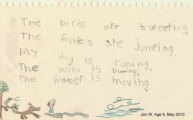 I’d say there’s definitely a natural talent there, plus your nature walks have managed to elicit something you won’t get through ordinary education. I really hope he keeps it up.
