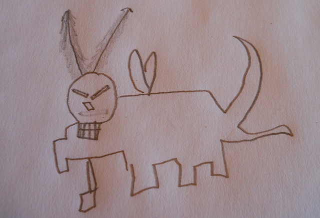 OH – There’s More! I forgot about the Dog Evil Mosquito Six Legged Dragon Dog that they brought in as a pet.  I’ll have to ask Nate What happened to the dog.  Do we keep it????? “Yes, he is your loyal pet, and when you want to call him you call abba yabba bamma scumma – and it jumps up & eats the flying Queen.” (Mom rolls eyes)