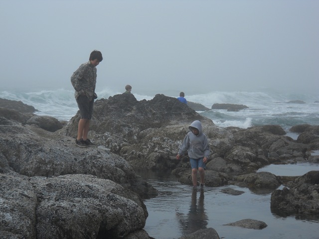 Boys a bit disappointed at how cold it was – and the tide pools are getting covered up by the summer shifting sands. ![]()
