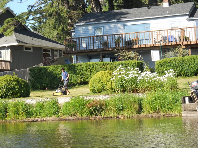 Oh. But for the joy of Oregon rain and fog and weeds. Soft glorious weeds and grass. No thistle. No Goats weed. No Thorns. Ah the joy of soft weeds. Velvet almost. We have a perfect strip of land between the lake and the house to toss back and forth. I just started cracking up when we’d drop the ball – realizing there would be no splat of dust to reach my eyelashes. No need to hose off before coming inside. Oh. The. Joy.