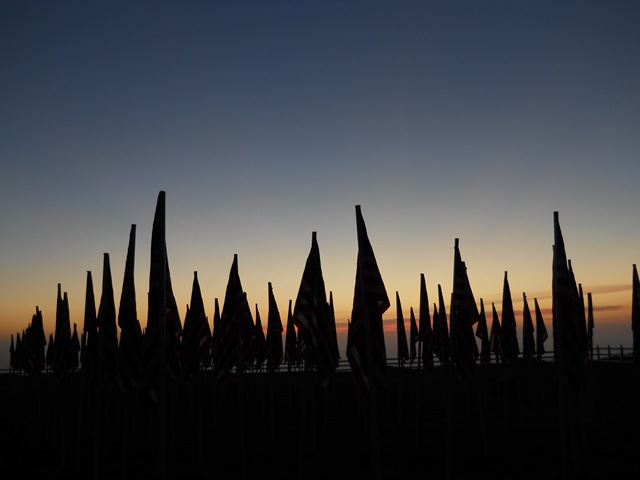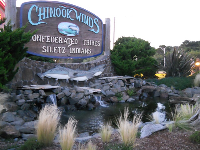 We took a sunset stroll on the beach and then walked up to the Chinook Winds Casino to see the Flags.