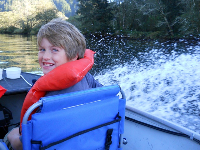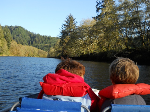 After we got Nathan and Darren on the right hunting road – Jon and I met up with a friend to troll for salmon on the Siletz River. She has the cutest boat that is the perfect size for four. I had my own little bench with a cozy seat. The boy shad shared the stadium sets up front. They had water guns and would randomly shoot birds. We spent two hours and then enjoyed the most beautiful pink sunset. The sunset showed while I watched them load the boat on the trailer so I don’t have pics – but it was purdy. 🙂