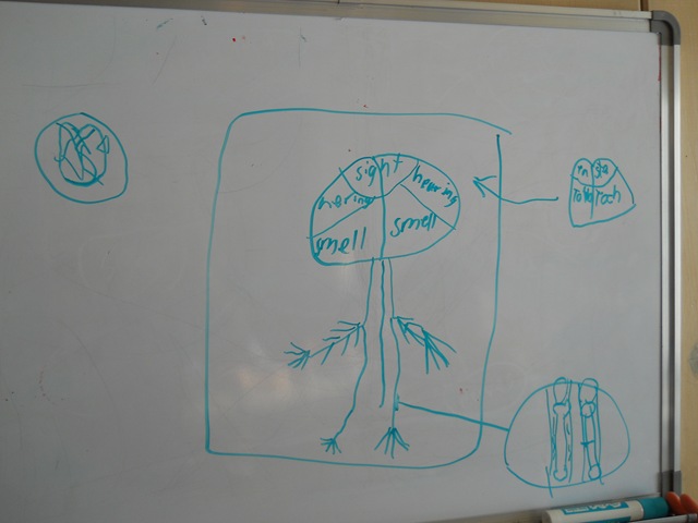 The Project:  The Brain. The team has narrowed down our body part to The Brain.  This week – I had the team mold the brain out of play dough and then draw the brain on the white board. They were to put up anything they researched about what the brain actually did. What is it tied to? What tie, if broken, would we want to focus on? What part of the brain would we want to focus on?  We had to cut our meeting short this week, so we didn’t get a team discussion after the sub teams – so I’m excited to hear what they came up with.