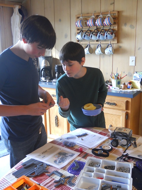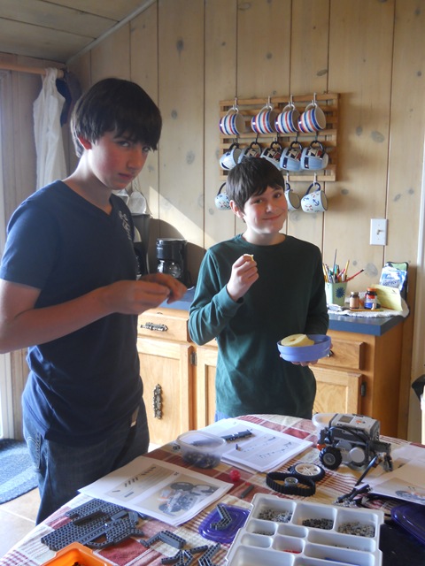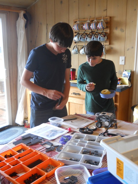 The team took apart the robot at our meeting last night. They are still putting it together. I know this is part of the process. And that it is better for them – to have a customized robot – but for the mom. Looking at the calendar. Who forgets to just be the coach. My heart is getting a little bit tight. AAAK. Ok. Coach Mom is back. I am excited that the kids are seeing that the robot needs changes to do the missions better – and are taking the time to reconstruct. And eat apples. (The Mom of the Boys is NERVOUS!!!!)
