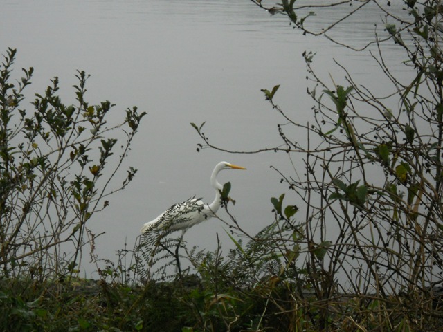 After hearing about the Salmon migrating into the D River last week, I took a tour of the south east side of the lake to see if any of the little streams would have fish. I came across this White Egret. Our Egrets and Herons on the North East side of the lake are MUCH more camera shy, and people shy. This little Egret didn’t seem to mind me at all. He’s pretty tiny in the body –smaller than ones in our yard. I am wondering if this is a juvenile first year.