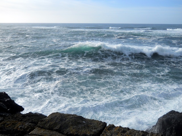 Our favorite part of living in Lincoln City is having the beach access points all throughout town. Although we have spent the last year finding the more out of the way the little end of the road turn outs –  we still enjoy the touristy – vacationer finder spots. Yesterday we had an opportunity to drive to Depoe Bay and back – a small 20 mile round trip – on  a gorgeous sunny day. Huge Waves. Big Spray. Green glass color in the crest of the waves. The Spouting Horn in Depoe Bay was shooting skyward in random patterns. Due to the Veteran’s Day Weekend there was a holiday vacation feel in the air as we gathered with many other vacationers on the beach. Did I mention how much I love being a homeschooler in Lincoln City?