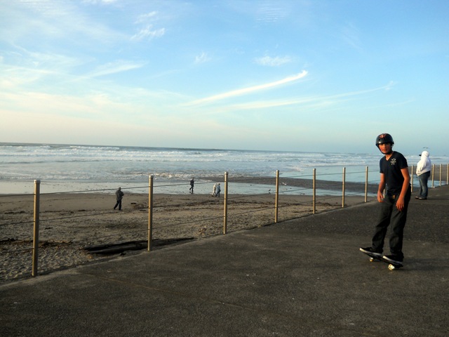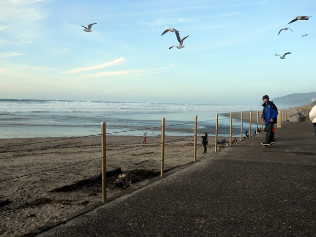 DSCN8351  This side walk gets packed thick with lawn chairs on the busy summer days. It is the perfect perch to be close to the ocean, yet save your back and hip from walking on the beach directly. Nate took advantage of the winter – crowd-less-area to wake board back and forth for a little over an hour. This picture looks squished – his almost six foot frame is so tall! I took a long walk up D River and over to the State Park though the wetlands boardwalk that connects the two state park areas. We made it back to the beach just in time to see the pink sky and the sun slip away for the night. Seriously. Have I mentioned how great it is to be a homeschooler lately?
