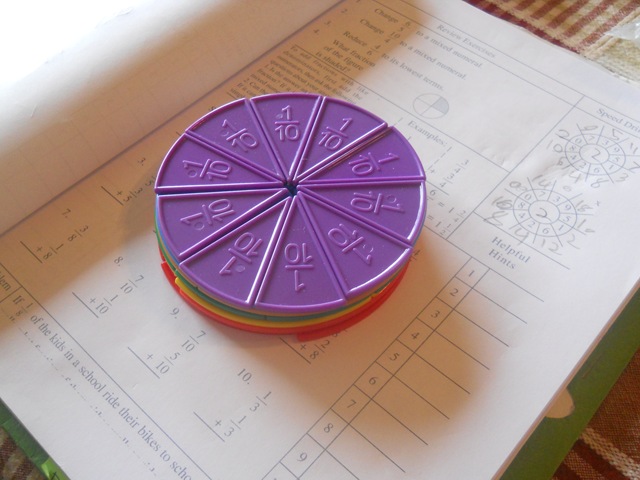 | Math | Math Essentials – Fractions Jon is having a hard time understanding what the fractions are doing. We are using plastic pie pieces, cooking, water, sand, graphs, white board etc. He gets the “math” part of 6/5 = 1 and 1/5, but he can not use it in a sentence or understand what it is. We’re working on it. | ALEKS – Nate is taking a break from Math Essentials to see if he’d like to pursue an online option for Math. The learning curve to get logged in, figure out what we are supposed to do – what he is supposed to do – and how they are supposed to do it – is – exhausting. He likes it. I’m Tired. |