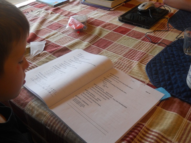 | English | Copy Work – Reading – Art – Story Writing – Definately Jon’s strong suit. He wrote a 5-6 page short story about a turkey while waiting for lunch and has written two songs today. Joy. | Nathan is working on The Write Foundation. Each lesson is new and challenging. There is a part where we have to figure out together what they want us to do. Once on track of Doing – it goes quickly |