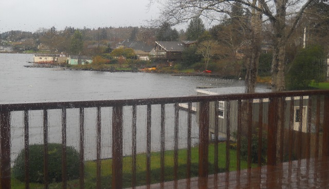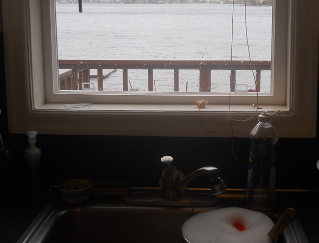 If you are a newbie to baking – I’ll let you know that NOW is a good time to fill the bowl with HOT soapy water. After you get the biscuits in the oven, they will be ready to rinse clean. Letting dough sit is not fun in an hour. 🙂 Like the view from my kitchen window? Me Too! The picture to the right is what is behind that blue curtain. The window is over 6 feet wide. Monday, a HUGE EAGLE full spread wing flew off the roof to the edge of the yard to snag a 3-4 foot carp out of the lake. His wing span filled the whole window as he slid right over the balcony railing. I’ve never seen anything like it. . . . . Biscuits. Right. Sorry.