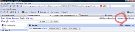 I have never spent any time in the Google Reader Settings. This morning, thanks to her encouragement, I DID!!! And I found TWO ways to solve the problems in my little Blog Subscribing Life. I’ve had such a fun time on line this morning, that I thought Maybe, just Maybe one of my readers would be as slow as me at all of this Google Reader Blog Follower Lingo and might want to hear what I learned. If you are cool and slick and know this stuff –  – – -Why Didn’t You Tell Me??????? Oh. Sorry.