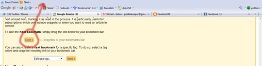 Scroll down to Use the Next Bookmark – and drag the Next box up to your bookmark bar.