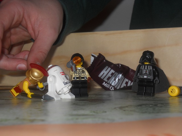 Epic Minifig Battles over who would take possession of the found Halloween Candy Hoarded under the Copy Machine found by the Explorer . . . . Hey. Did anyone notice that the chocolate is gone and we are fighting over a wrapper??? Vader. What are you doing over there. . . . . . . .