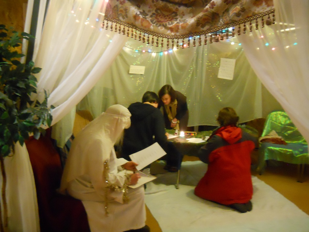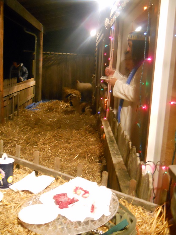 We made a scroll of the verse in Isaiah 61 that was opened and read in Luke – they had the words in Hebrew written out and we were to copy the Hebrew, roll it up, and then seal it with wax. They had a huge Mediterranean snack center open. Nate says Falafel was Fil-Aweful – but I liked it! Yummy Snacks! The goats were a bit skiddish – might have been the raw goat’s meat sitting by the barn that the kids were using to roast over the fire. . . Anyone seen Henry Lately? Henry?????