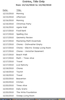 Reports are pretty basic, but for our needs they work. If you had more than two kids, it might be a pain to have to write their names on top if you print them as a “to be done” page. If you print Entries Full Description – you probably will have to tweek the Subjects and Entry Titles to best convey what you want done if you don’t want to fill in a lot of detail in between. If you want a list of hours spent it works Great.