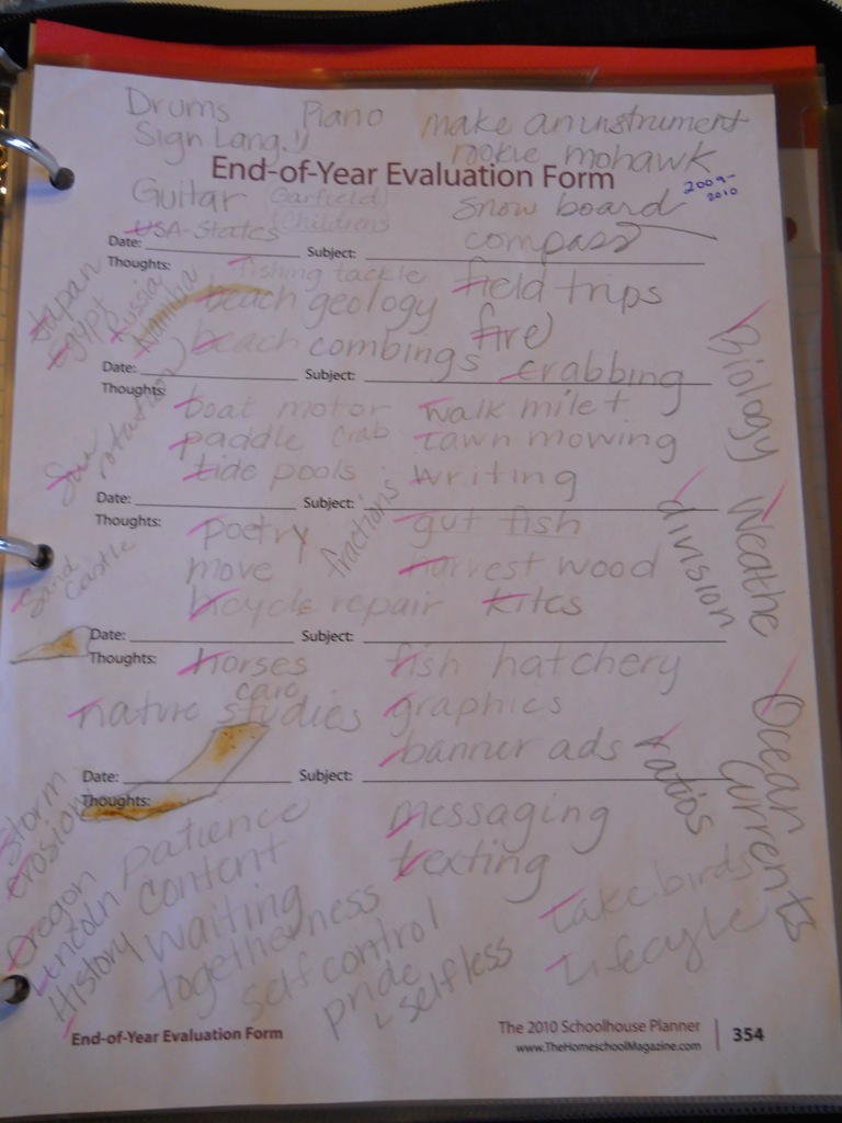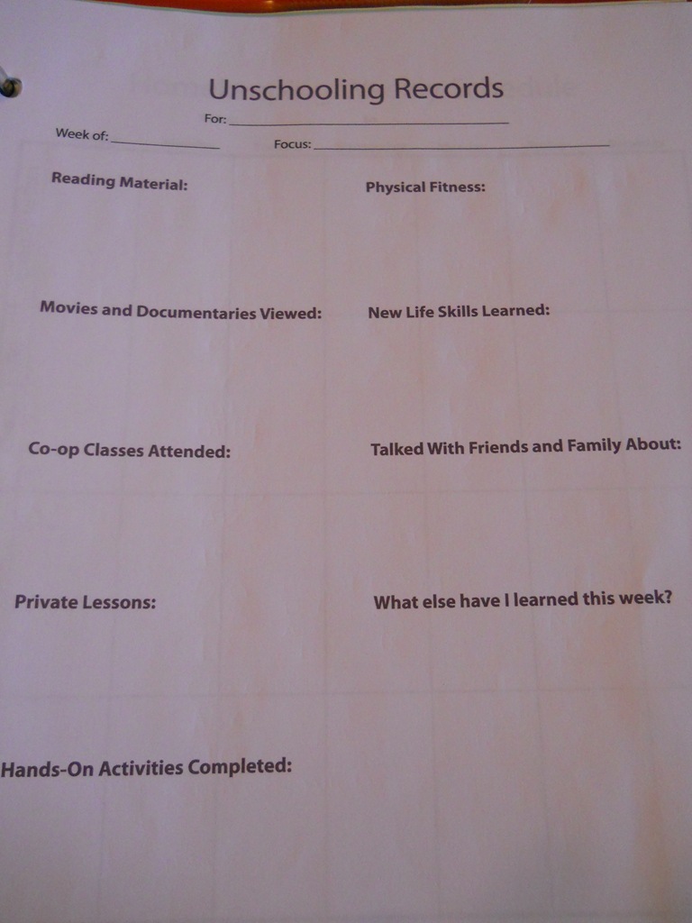 A few other forms with a relook to see if we are on track are the Educational Objectives and the Unschooling Records. It is nice to have these types of forms on the ready to see what I might be overlooking – or to see – like I did today – that we are right on track for our goals for the year.
