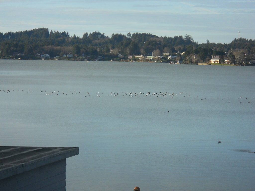 From my deck, I can only see a floating mass of black dots. With the telescope – I can really see the detail of each bird!