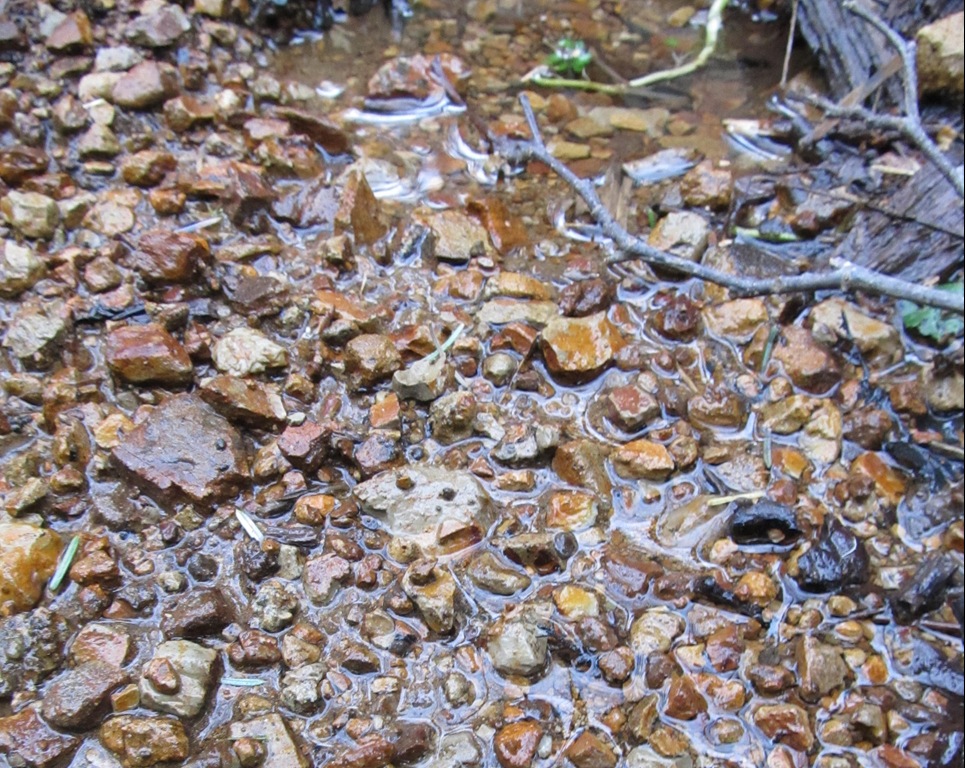Last month this was a 2-3 foot wide stream to the Lake from the Eastern hills. Today – small babbling brook. But the stones. See them? So beautiful!
