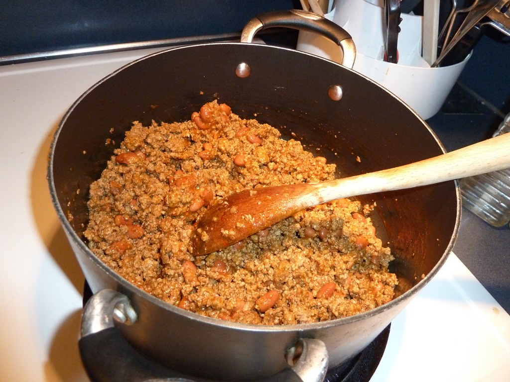 Re-heated taco meat with a can of Nally’s Chili thrown in.