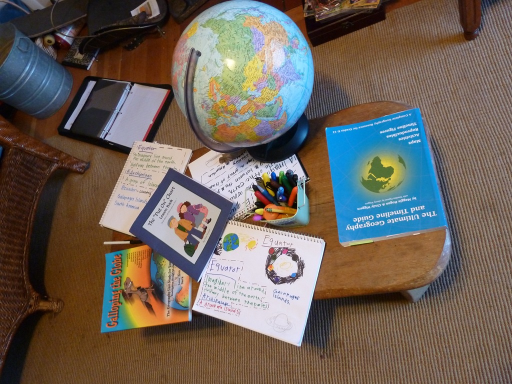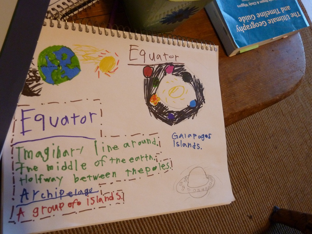 I casually asked the boys to describe what the equator is, and off the cuff they gave the craziest answers, like if you cross it, it becomes the next day. Hmmm. So we spent some time back tracking the Earth, Sun, Movement, Time Zones, etc. It was a naturally moving conversation, and I feel that the boys have a renewed understanding.