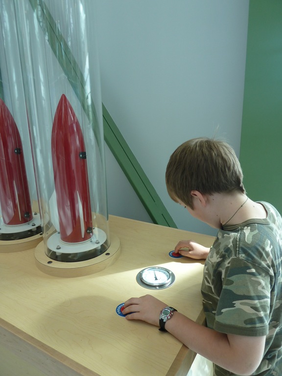 One of the most enjoyable parts of field trips for me are when the boys get to interact with the volunteers. Here they call the volunteers Docents. They have a sparkle in their eye as they watch visitors see these great crafts in person. The boys also get to mingle with other visitors, the visitor below was just itching to race someone on the rocket launch – and he was almost as giddy as a 5 year old when Jon agreed to “Play” with him.