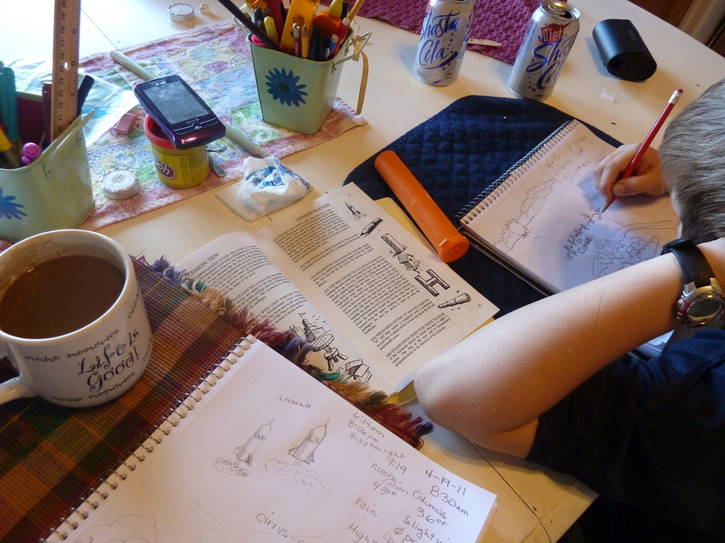 Wonderful weather study, love that it is incorporated into your life activities and that the boys truly make their journals their own. The progress! Wow! I know how good that must make you and your sons feel about being able to see how the effort is paying off. Not in drawing skills but in observation skills and pulling it all together.
