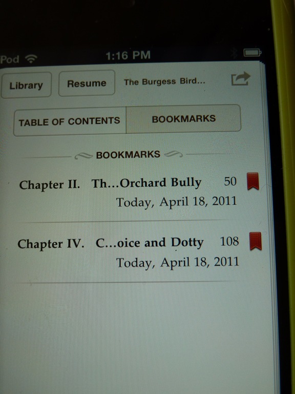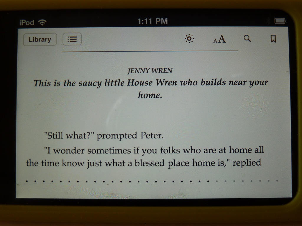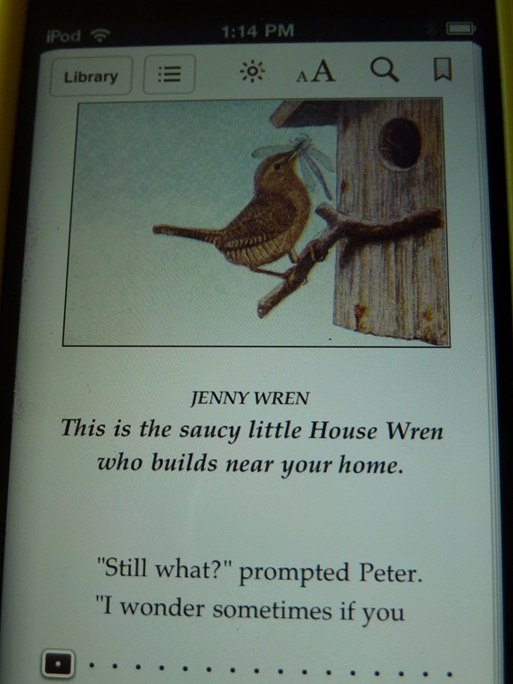 The boys have iPods, but we do not have a handheld reader – these Kindle files do not work on the iPod, but they will work on a regular Kindle. I read a few pages of nature stories on the desktop, but I wanted to get MORE out of it. To bring the Burgess Books to the Park, to read about the birds under the trees.
