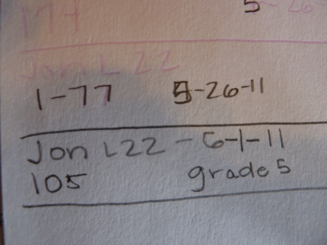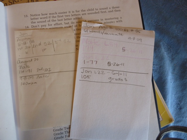 Sure enough, his reading speed level had dropped to 77 words per minute, considered part of a 3rd grade level. (Don’t be jealous of my meticulously neat learning records.)