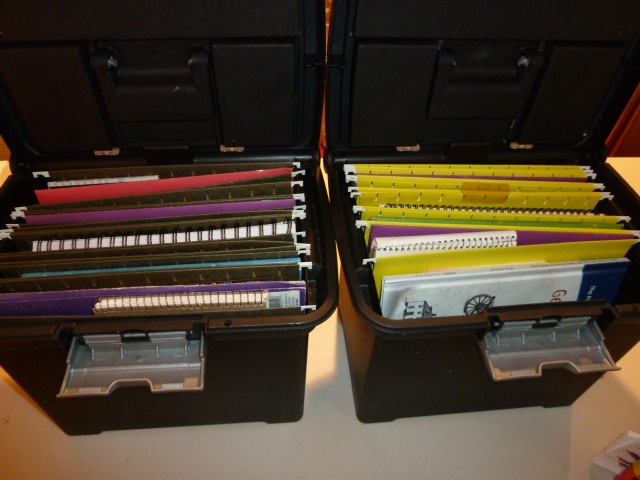 So it hit me. For $25.00 – this Desk Apprentice was not really going to help out my long term goals. Keeping their work handy, transportable, and clear of clutter. So – We’re back to where we were before the magazine holders (that were too small) – with these file boxes!