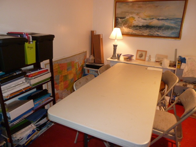 It helped me to organize the classroom and look over my resources so I can pray about our goals for the upcoming year. (See the door through the garage door? That’s where the classroom Library Stamp Corner is located. But – I’m taking it back to Staples today.