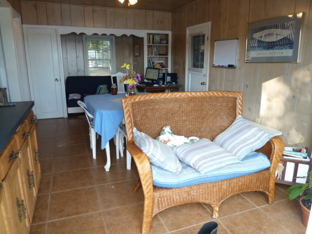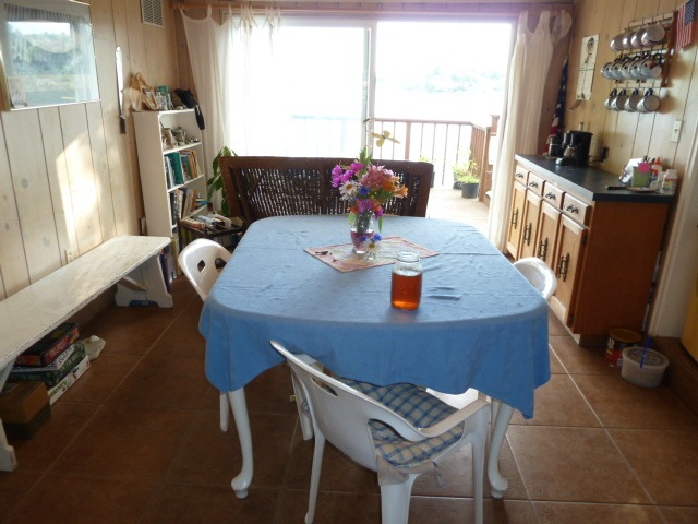 Continuing the tour, I have a reading area there by the sliding glass doors, the dining room and the coffee bar.