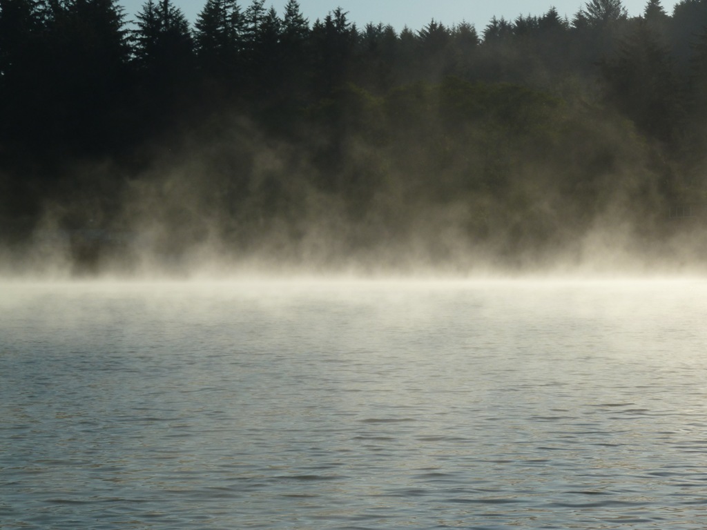 All is calm – steam is rising from the warm water from the cool of the morning.