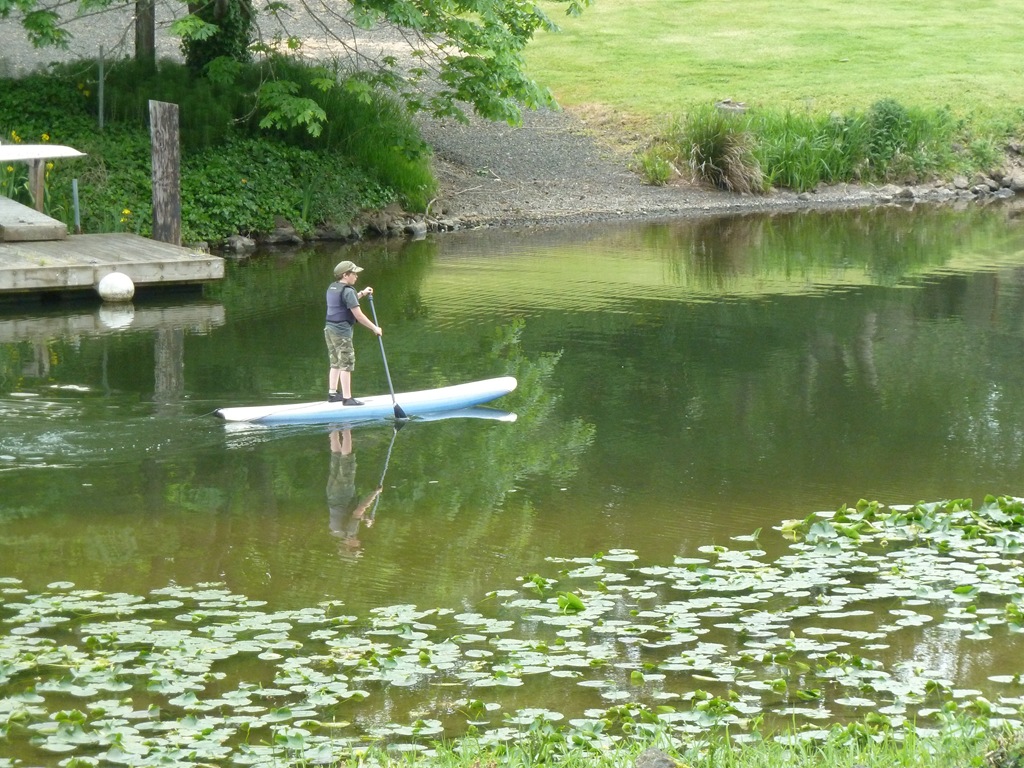Jon spent many an hour this month paddling around the lilys. We discovered that the underbelly of the lily pad is home to many bug eggs and larvae. The trout, bass and bull heads seem to congregate under their shade and nibble at the leaves. When we had our frogs, they REALLY liked to pick the leaves clean.