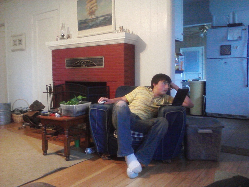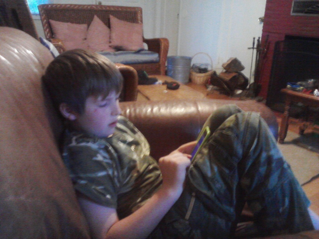 10 yr old bored playing iPod. I think this was a rainy day this spring.