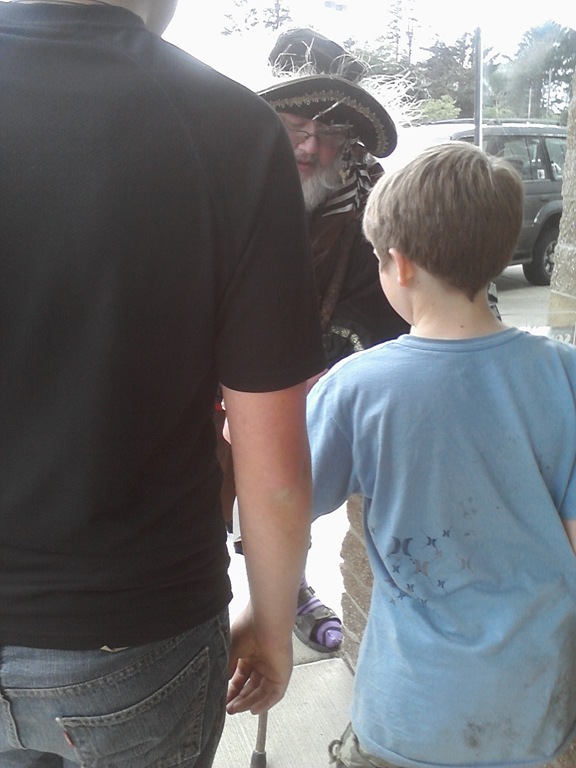 Pirates giving Jon pieces of 8 before he goes to see the movie . . . There were a group of pirates singing at the door of the theater. Pretty fun stuff for our tiny town!