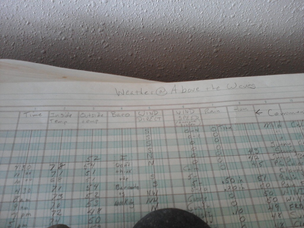 One of my favorite houses to Arrival Check. They have a very cool weather station for guests to log each day. I love the simplicity of the ledger sheets, placed on top of their large TV, right at the window looking out at the beach.