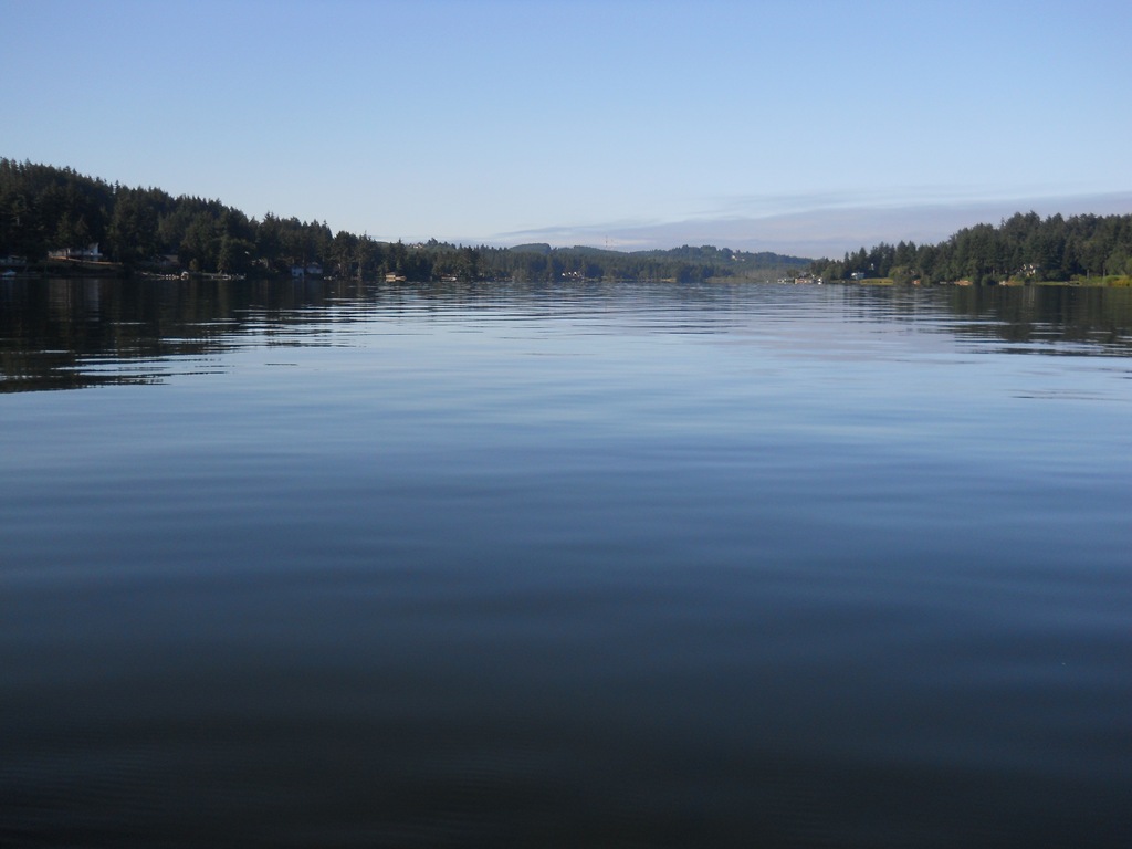 Headed out this morning – Due West – the view from the tip of our dock.