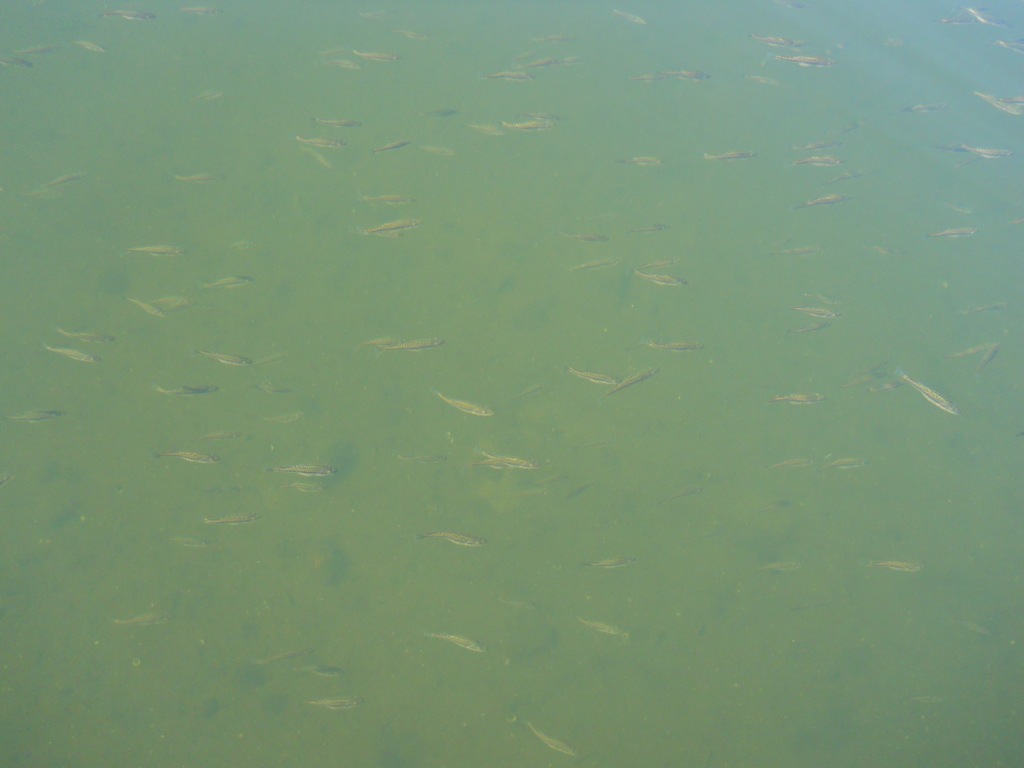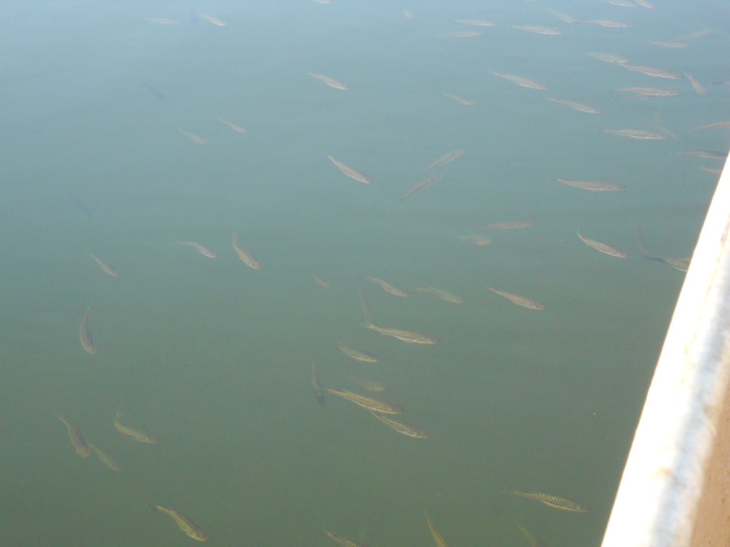 The water is clear enough to see the bottom. Bottom feeding fish are in those shadows along with large fresh water clams.