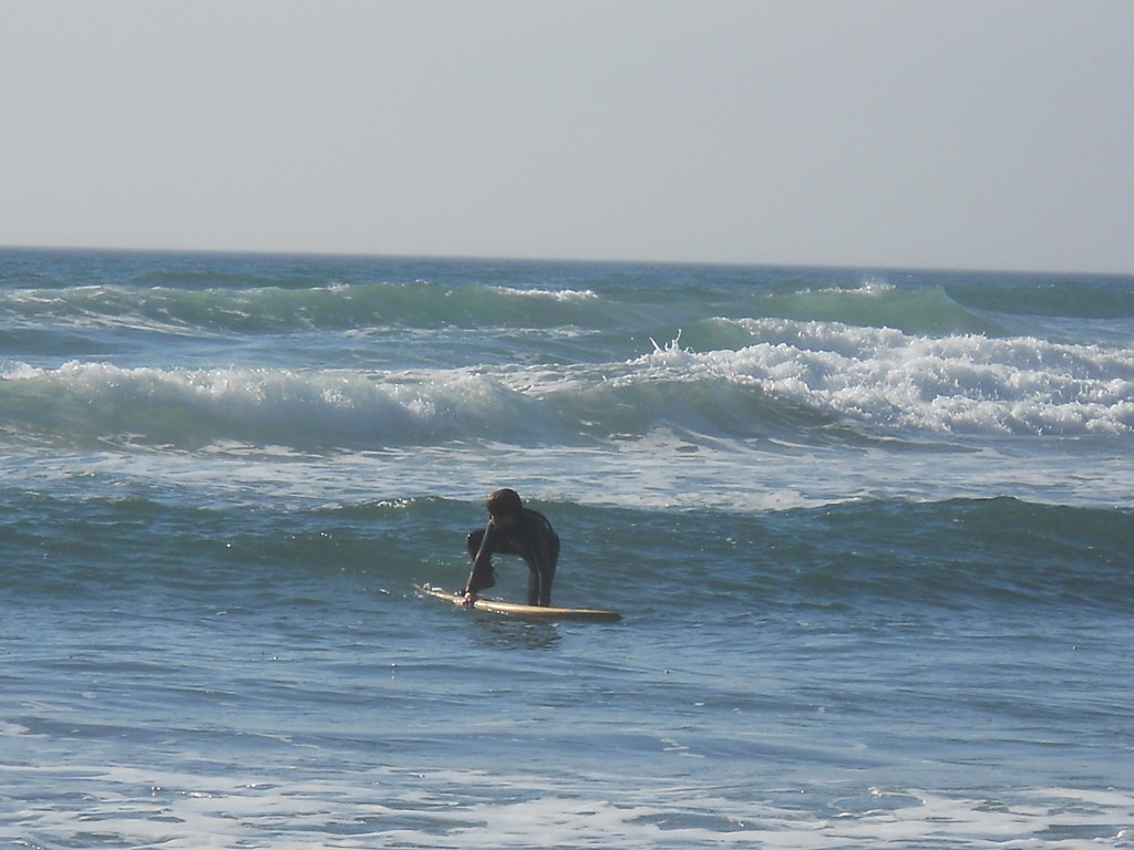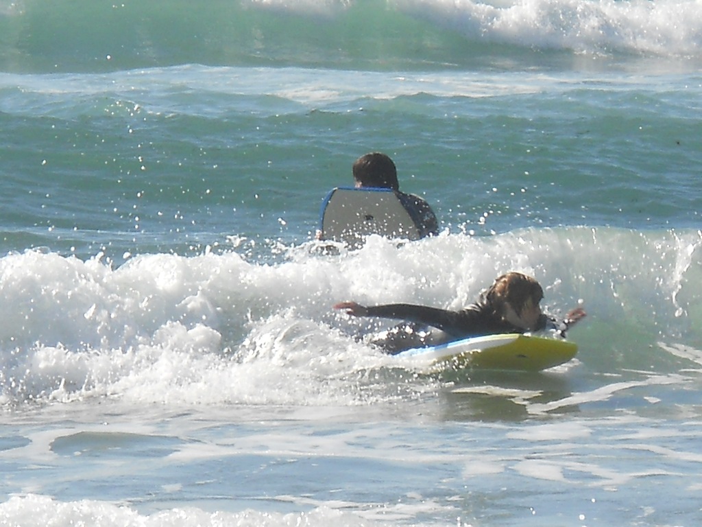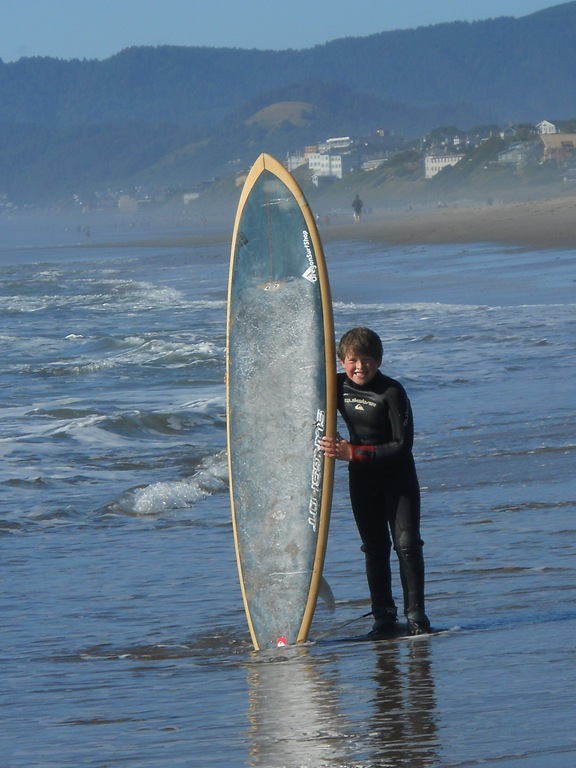 He really really likes the feel of the waves, the pull. He was quoting penguins off of surfs up telling me how much more the movie made sense now. Literary Genius that kid.