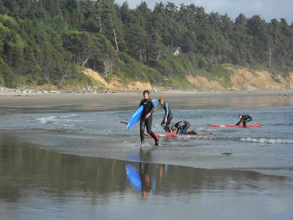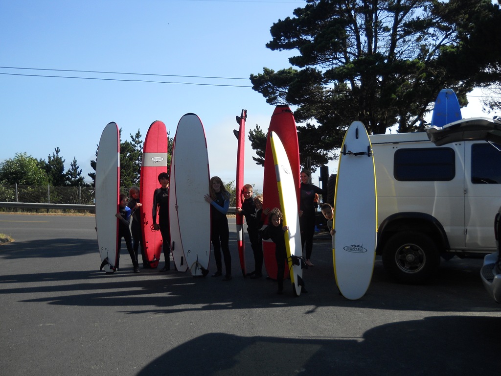 Oregon Surf Shop held a Surf Clinic last week for a group of kiddos – Wee tiny to about 15 years old. Three adult instructors – a couple of more adult watchers – and all of the equipment – Boards, Gear, & Transportation. These kids were Fired Up to learn to Surf!